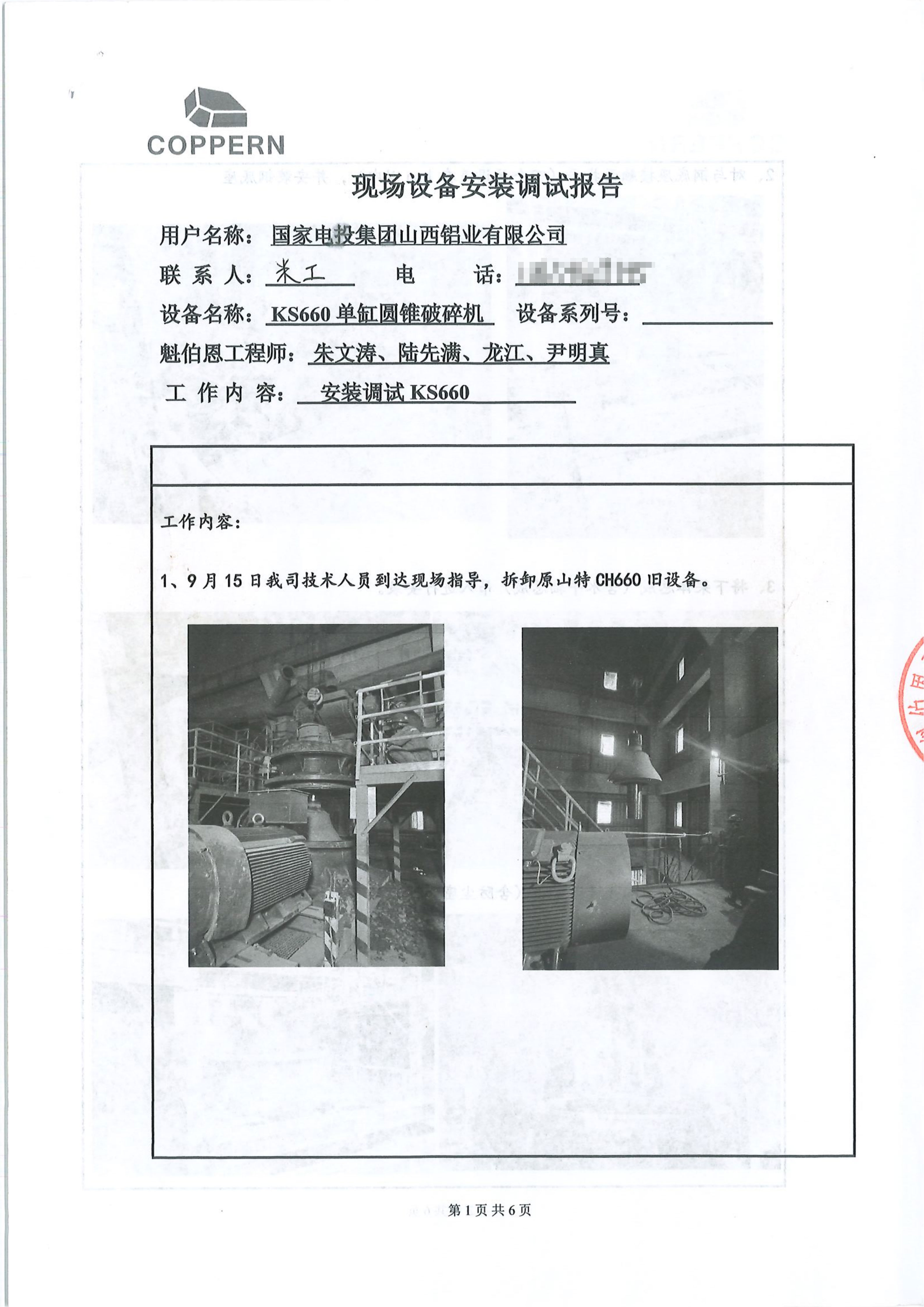 國家電投集團(tuán)山西鋁業(yè)有限公司現(xiàn)場設(shè)備安裝調(diào)試報(bào)告