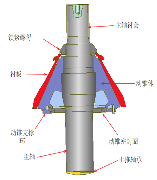 通過(guò)有限元分析(FEA)對(duì)動(dòng)錐進(jìn)行結(jié)構(gòu)強(qiáng)度、剛度、疲勞壽命的計(jì)算,針對(duì)受力最大區(qū)域,進(jìn)行加強(qiáng),對(duì)應(yīng)力小的區(qū)域,進(jìn)行輕量化處理,全面優(yōu)化錐體的受力;