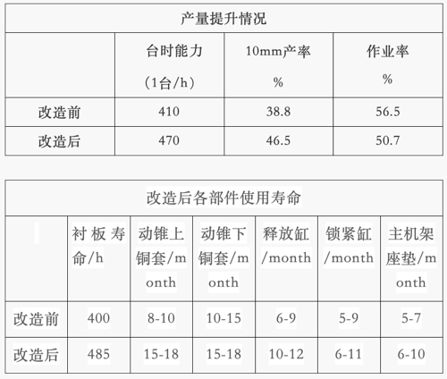 ? 魁伯恩長期合作的山東鐵礦客戶,通過魁伯恩技術(shù)團(tuán)隊(duì)對(duì)該礦山項(xiàng)目的改造和設(shè)計(jì),運(yùn)用了此方案,讓圓錐破碎機(jī)實(shí)現(xiàn)了高效運(yùn)轉(zhuǎn),能力提升10%,同時(shí)降低破碎機(jī)破碎系統(tǒng)的單位運(yùn)行成本。經(jīng)過長期的運(yùn)轉(zhuǎn),在運(yùn)行中不存在物料偏析的情況,料位穩(wěn)定,可保持?jǐn)D滿給礦的狀態(tài),消除襯套偏磨、環(huán)跳等現(xiàn)象。襯板使用壽命延長13%,銅套、釋放缸等備件的故障率降低50%,鎖緊缸壽命延長一倍(僅襯板消耗,每年可節(jié)約成本約20萬元,其他相關(guān)備件節(jié)約成本約6萬元),實(shí)現(xiàn)直接經(jīng)濟(jì)效率約28萬元/年。
